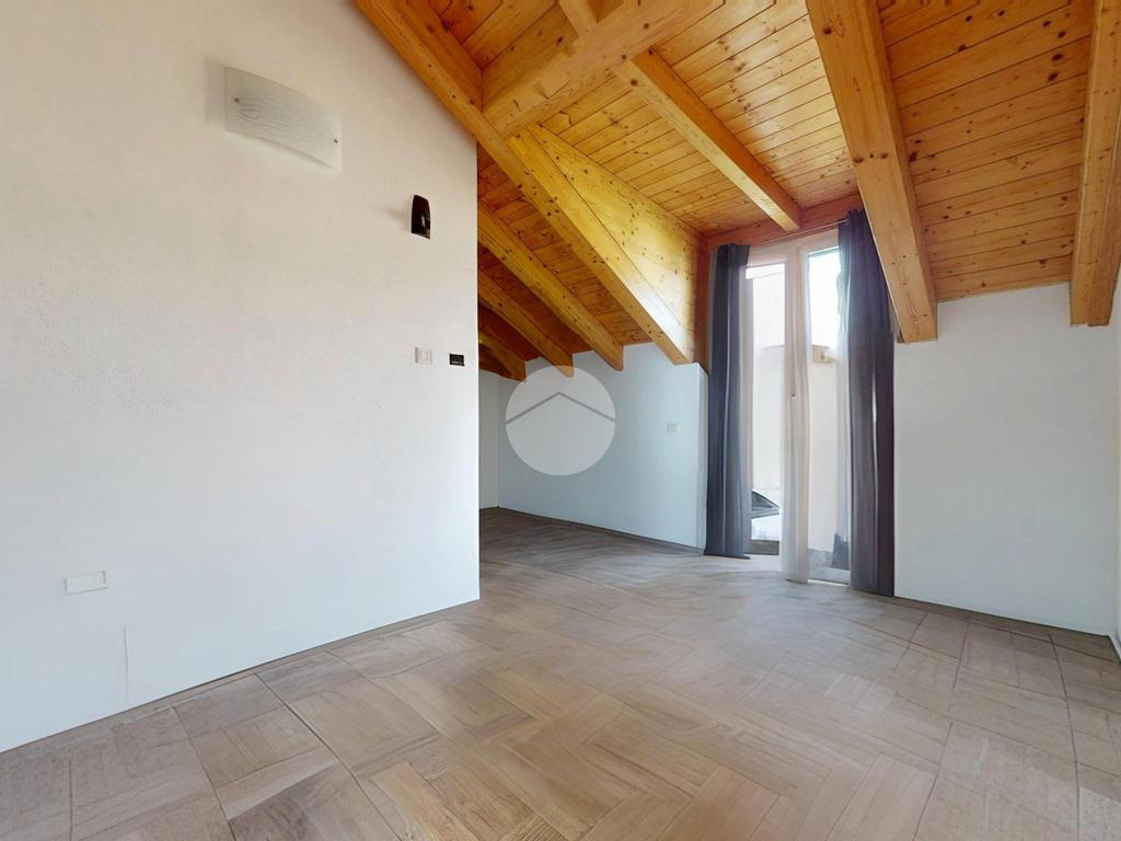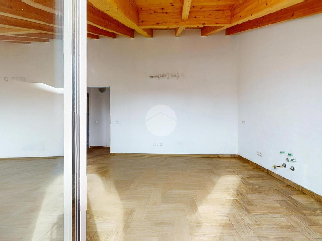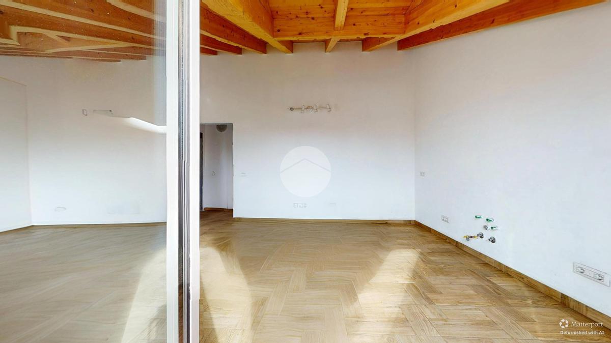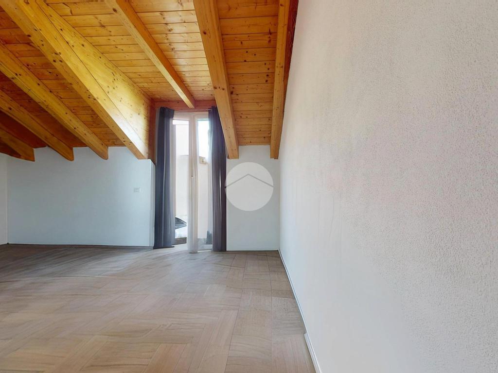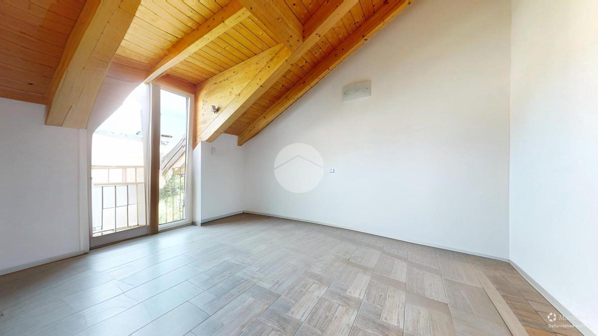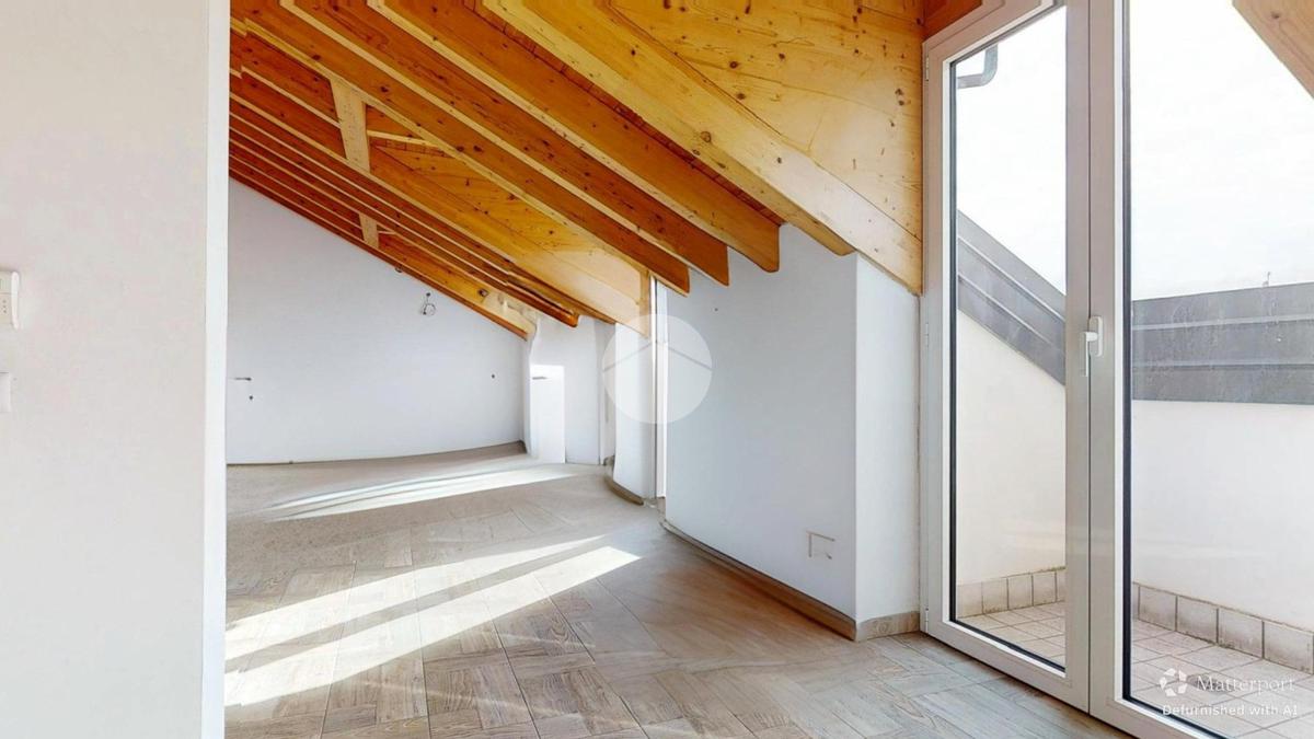 Dal soggiorno, un disimpegno conduce alla zona notte, garantendo privacy e separazione degli ambienti. La camera matrimoniale è spaziosa, accogliente, e ben rifinita, perfetta per garantire un ambiente intimo e confortevole. Le travi a vista tipiche della mansarda donano calore all'ambiente, creando una zona notte accogliente e personale.