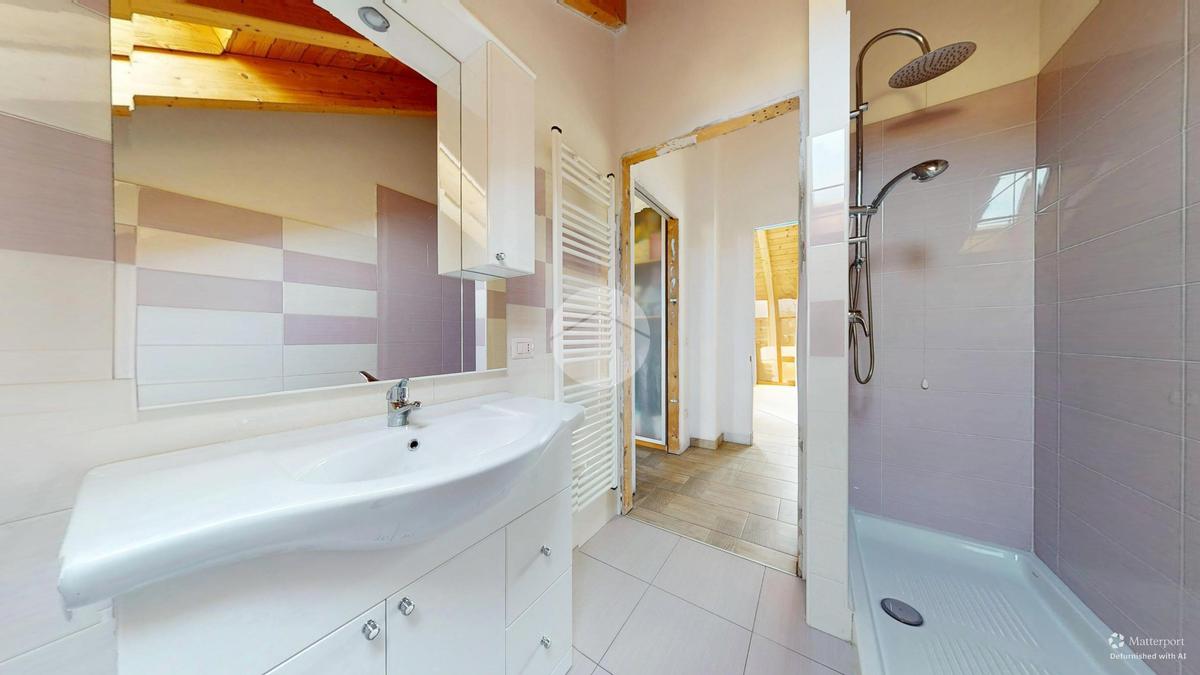 Il bagno è finestrato e dotato di una moderna doccia, studiato nei minimi dettagli per offrire il massimo comfort. Le finiture sono eleganti, e la finestra garantisce una buona ventilazione e luminosità, un vero plus per un bagno.