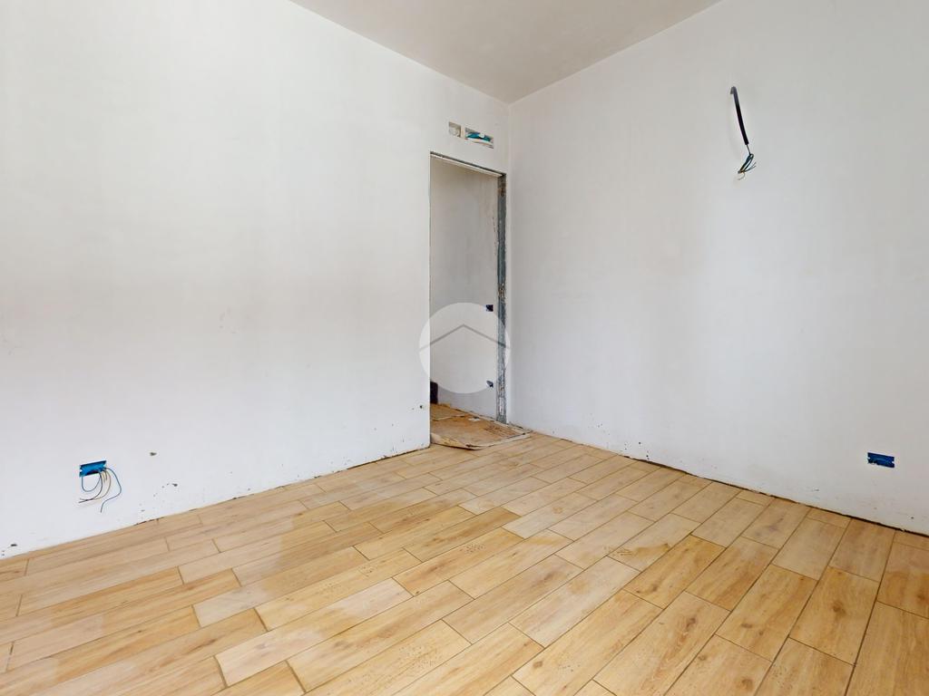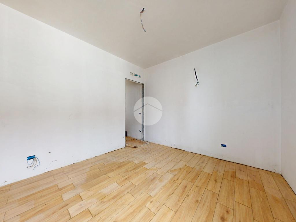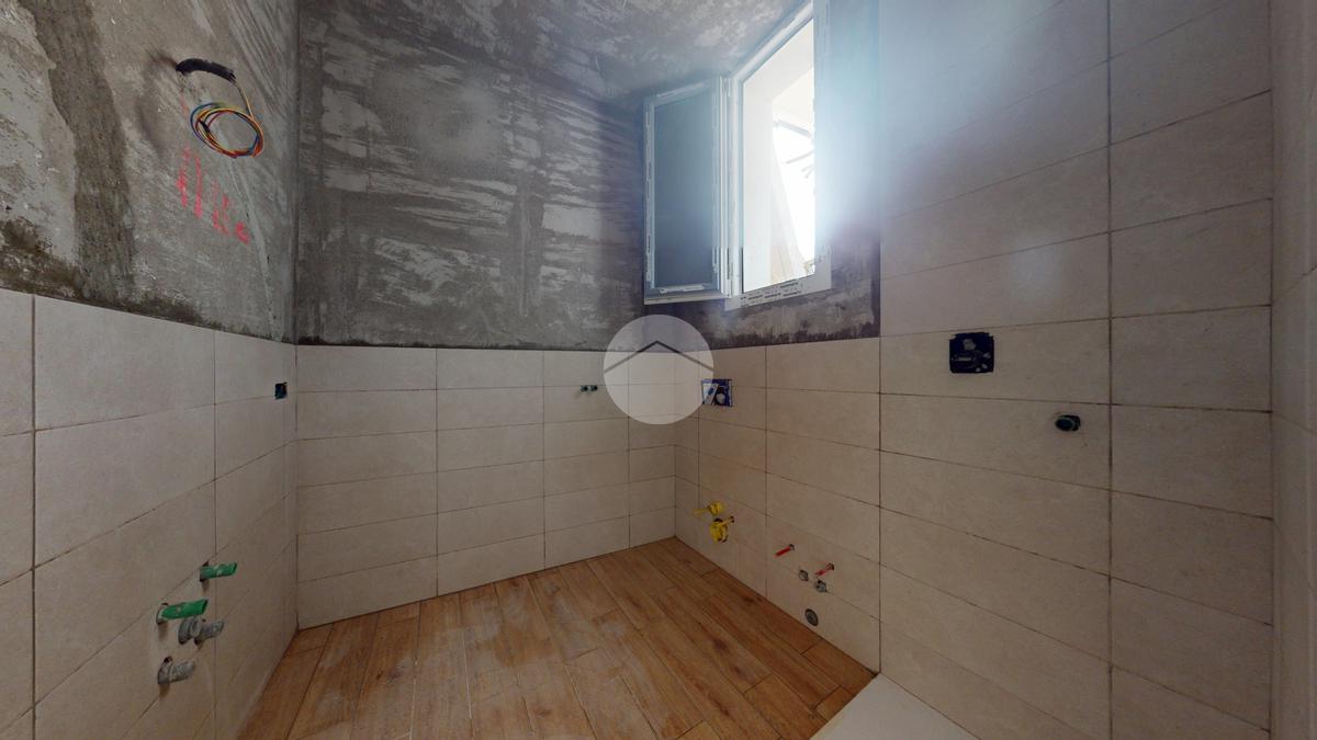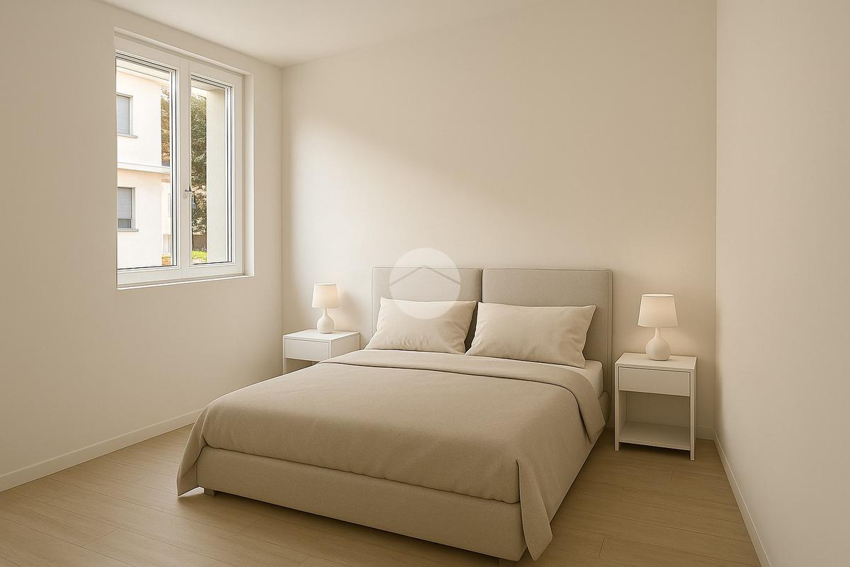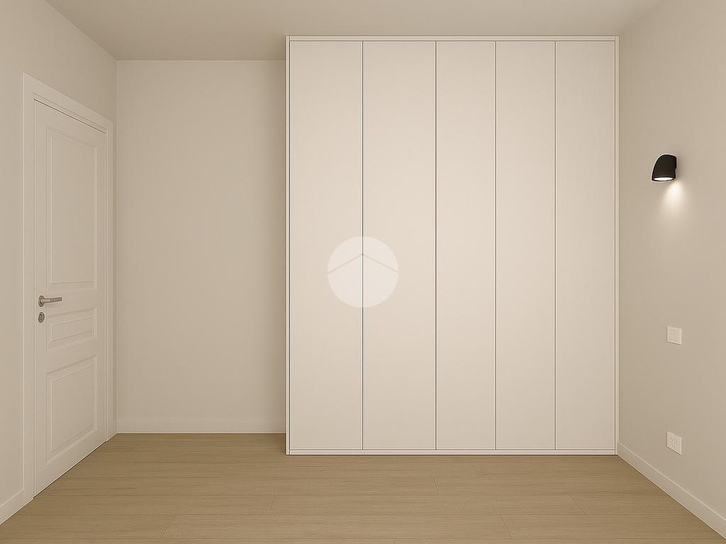 L’appartamento è composto da un soggiorno con cucina a vista, illuminato da grandi finestre che garantiscono una straordinaria luminosità e un comodo balcone. La camera matrimoniale è ben organizzata, mentre il bagno è rifinito con sanitari sospesi e un elegante piatto doccia extraflat. Le finiture interne prevedono pavimenti in gres porcellanato di prima scelta, con la possibilità di parquet prefinito nella zona notte.