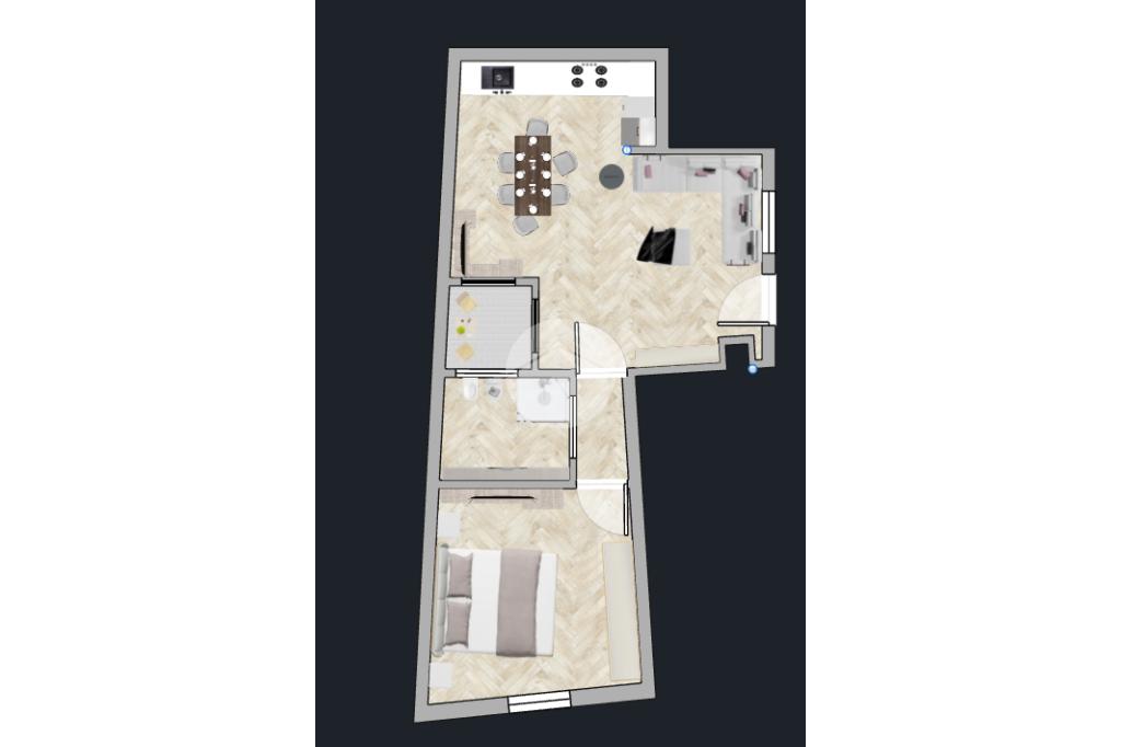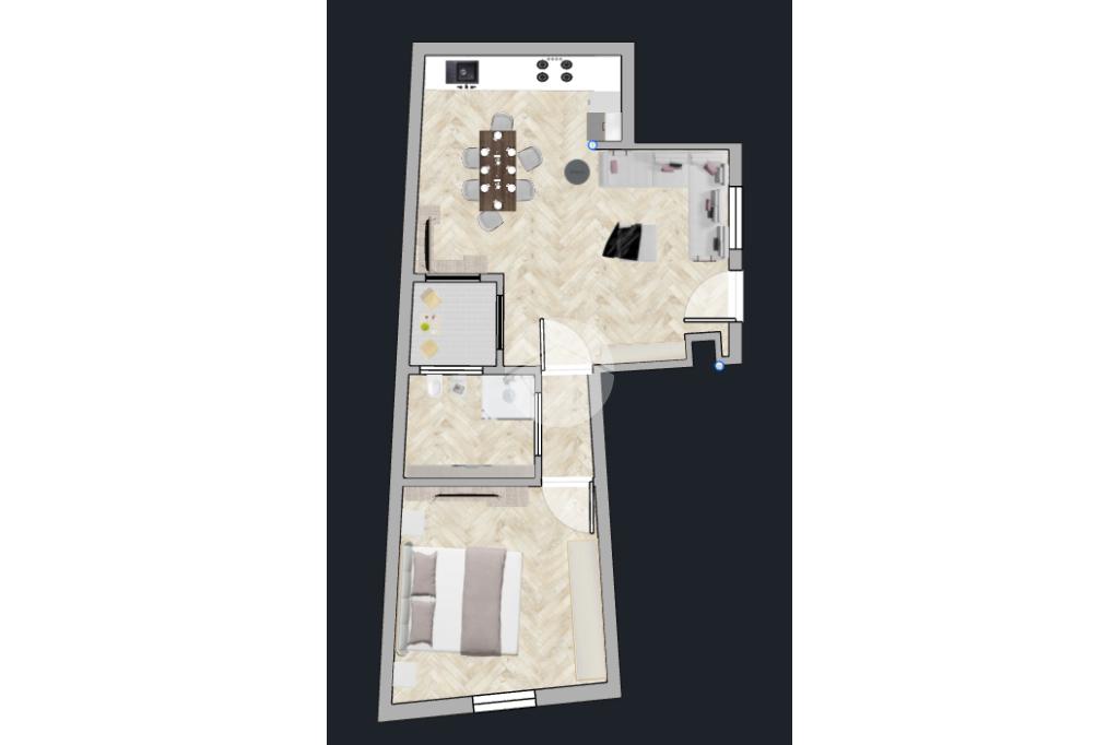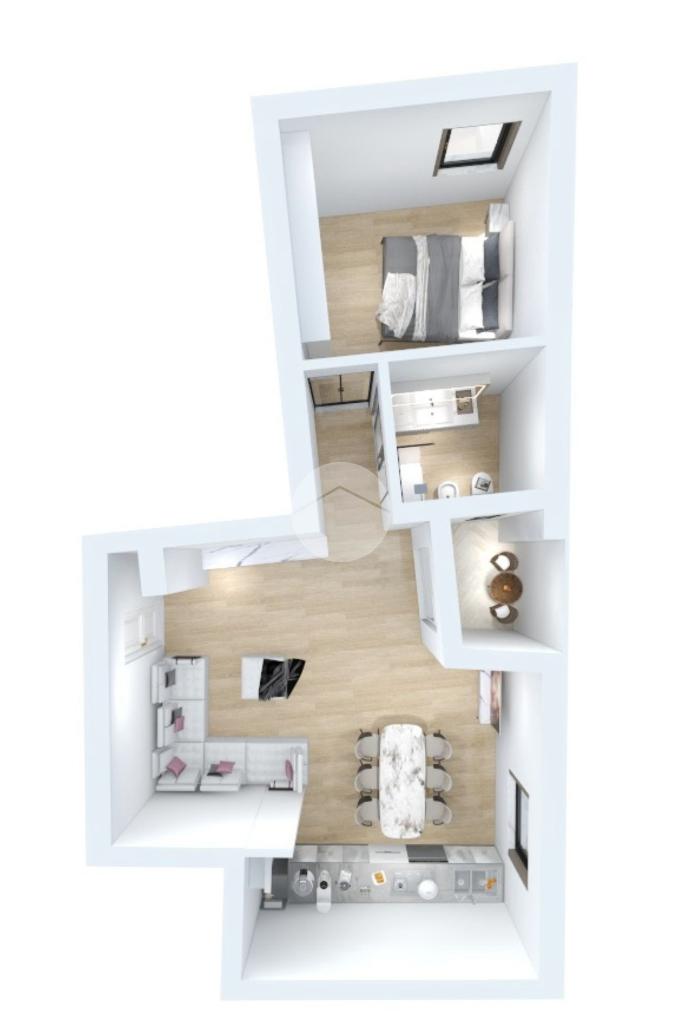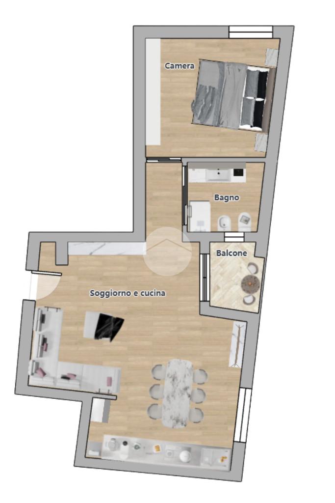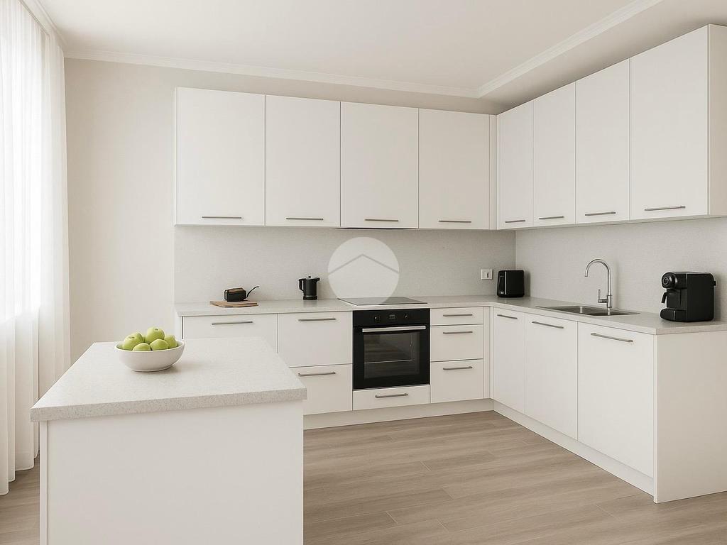 L’appartamento è composto da un soggiorno con cucina a vista, illuminato da grandi finestre che garantiscono una straordinaria luminosità e un comodo balcone. La camera matrimoniale è ben organizzata, mentre il bagno è rifinito con sanitari sospesi e un elegante piatto doccia extraflat. Le finiture interne prevedono pavimenti in gres porcellanato di prima scelta, con la possibilità di parquet prefinito nella zona notte.