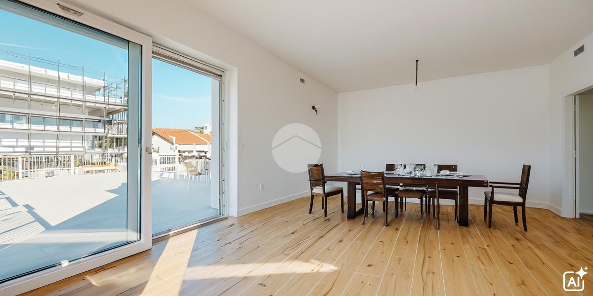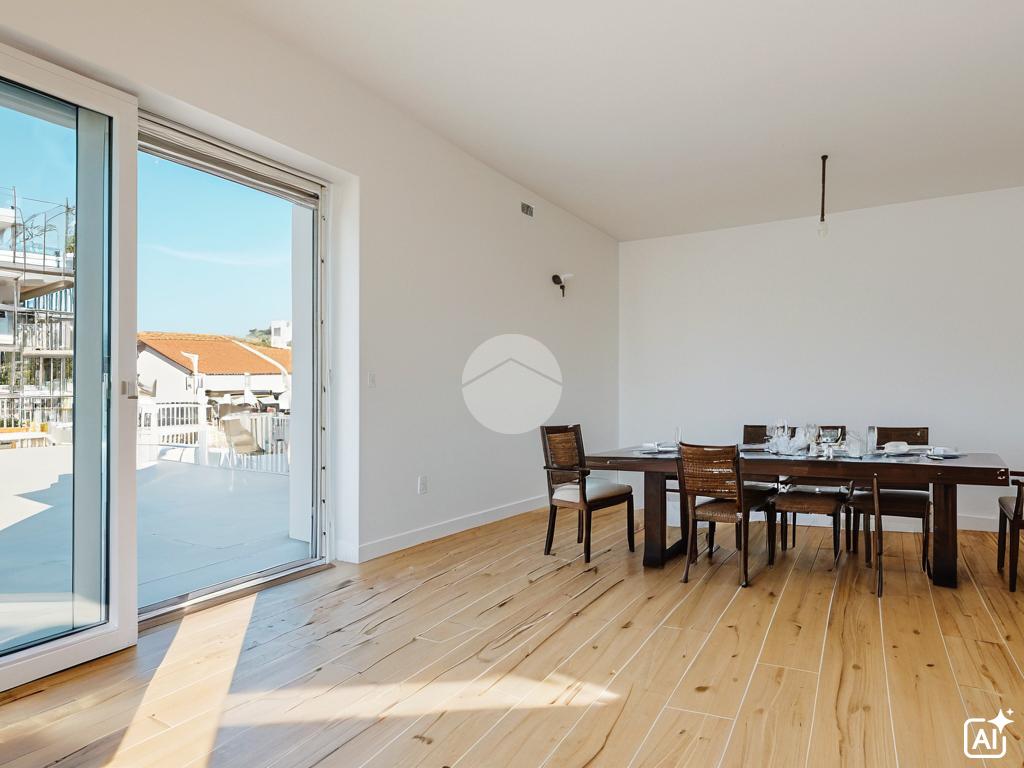 L’ingresso si apre su una luminosa zona giorno con cucina a vista, caratterizzata da finiture moderne e materiali di alta qualità. Il gres porcellanato effetto raffinato riveste i pavimenti, mentre gli infissi in PVC a doppia camera con vetri basso emissivi assicurano un perfetto isolamento termico e acustico.