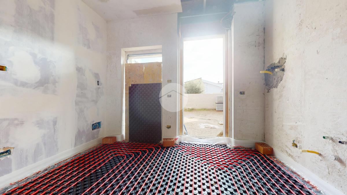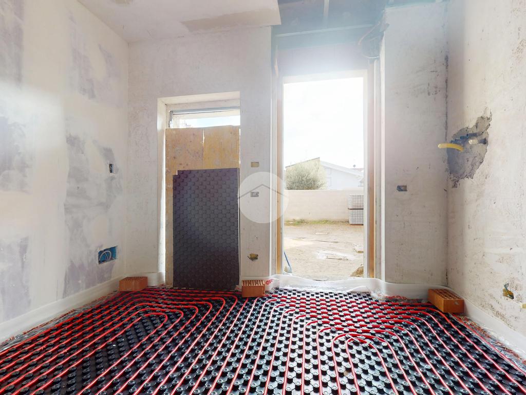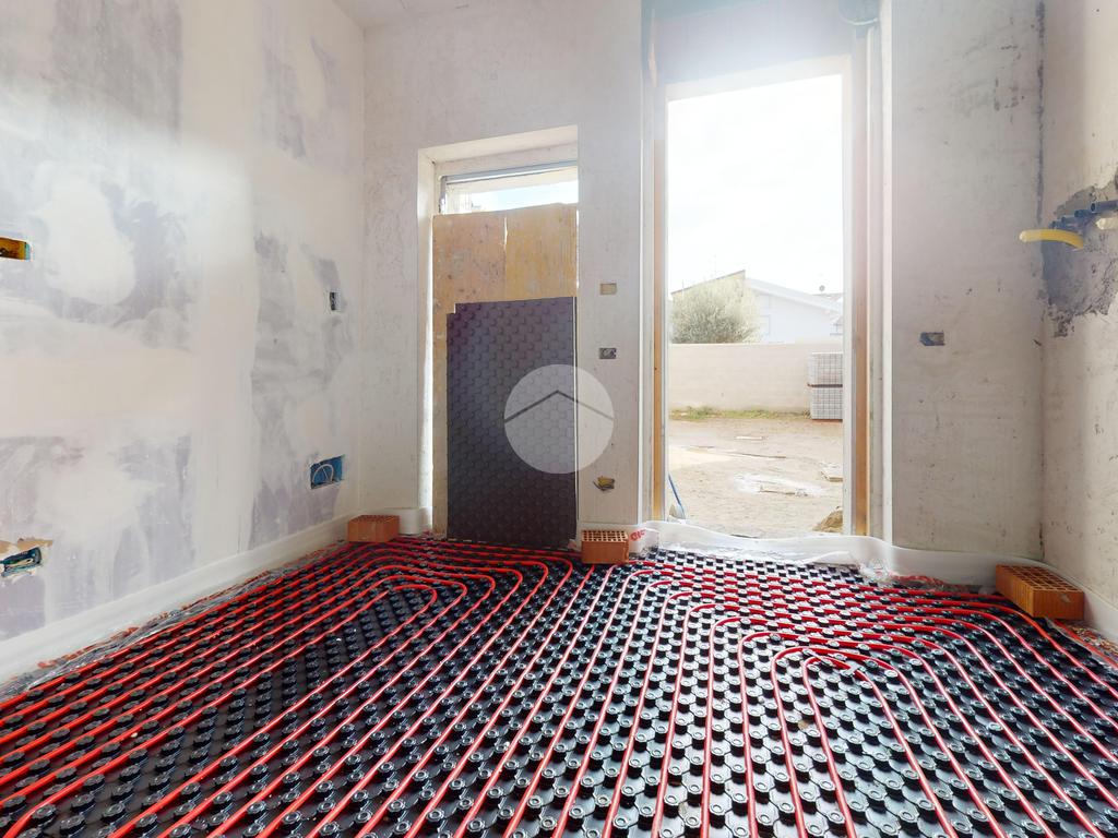 Serramenti in PVC bianco con vetrocamera da 28 mm, tapparelle elettriche, porta blindata, videocitofono e predisposizione impianti TV, telefono e internet in ogni stanza completano la dotazione tecnologica. Il cappotto termico esterno da 10 cm e la scelta di non utilizzare gas metano garantiscono efficienza energetica e attenzione all’ambiente.