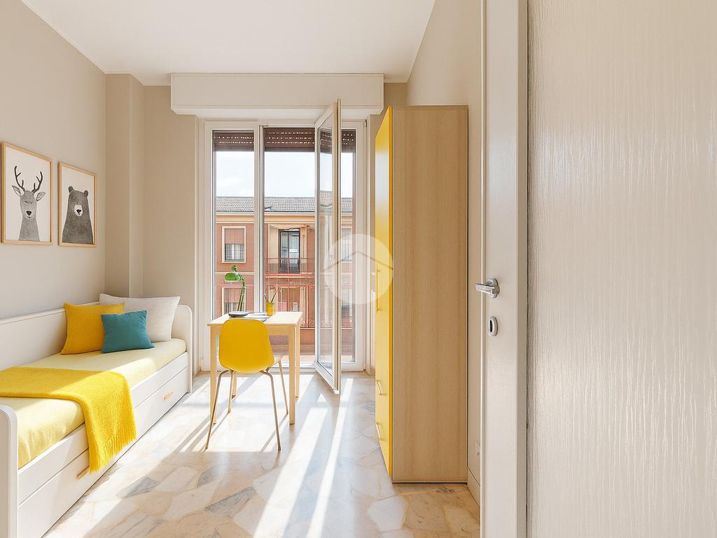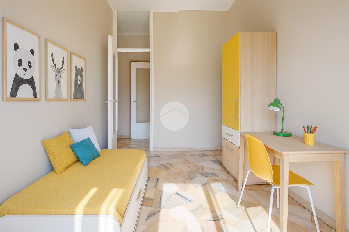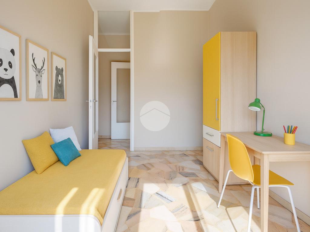 La zona notte ospita due camere da letto entrambe di dimensioni ampie e ben vivibili: una matrimoniale spaziosa e una cameretta luminosa che può accogliere comodamente più arredi o diventare anche uno studio. Il bagno è finestrato, completo di vasca, perfetto per chi cerca praticità e comfort quotidiano.