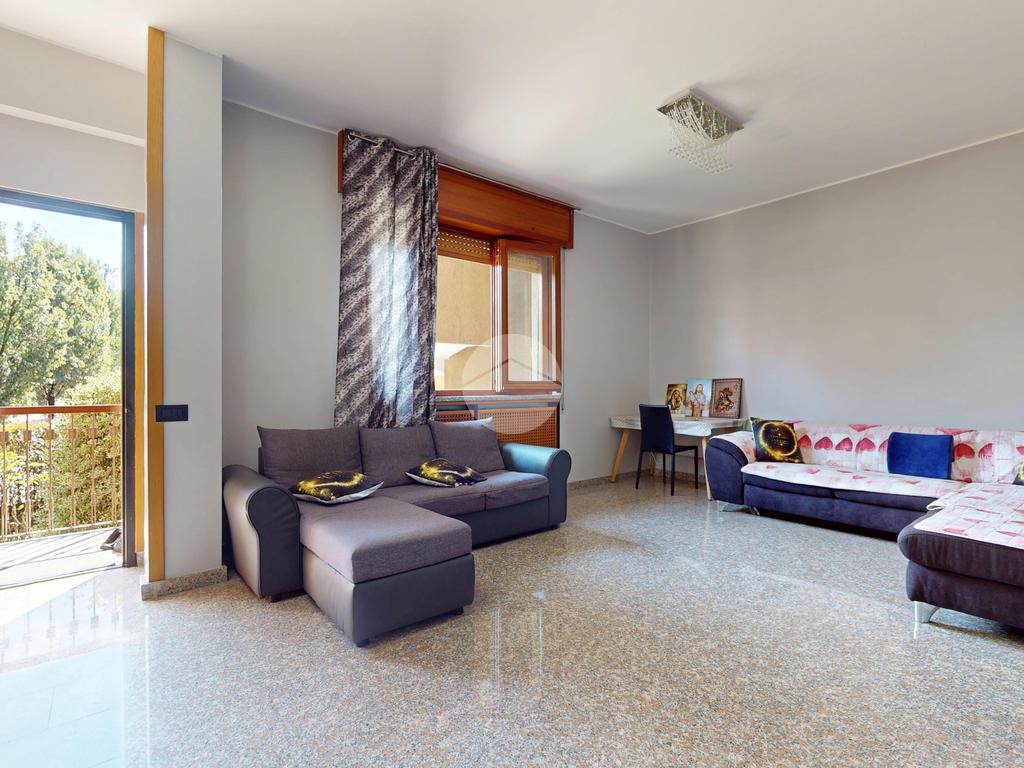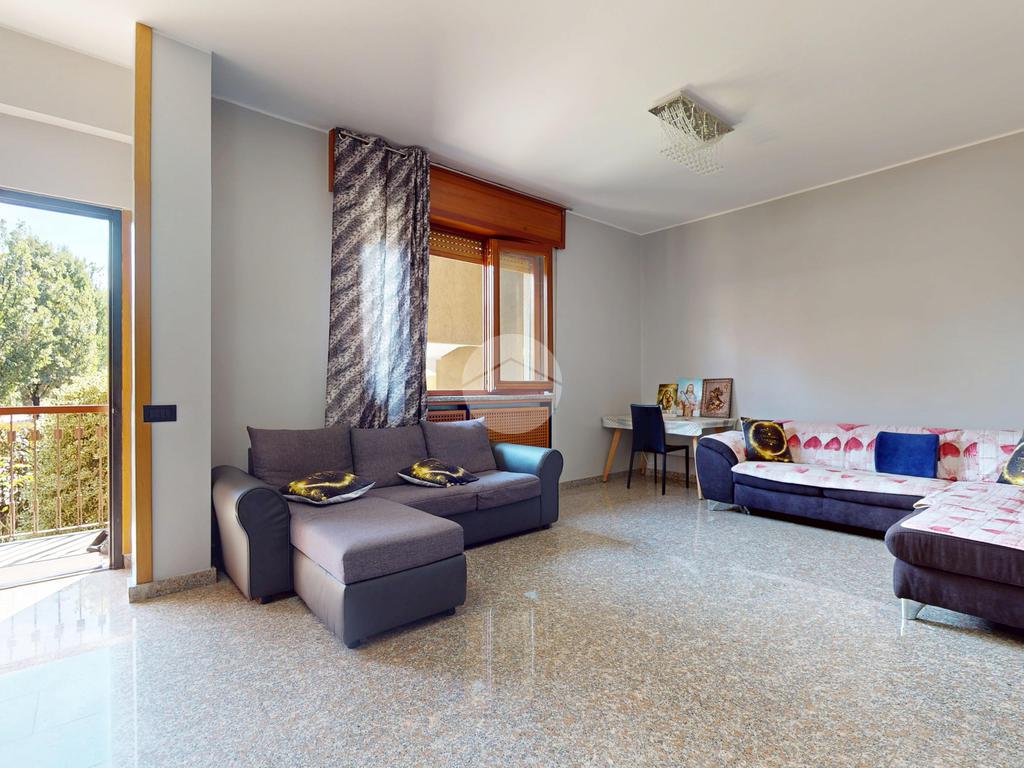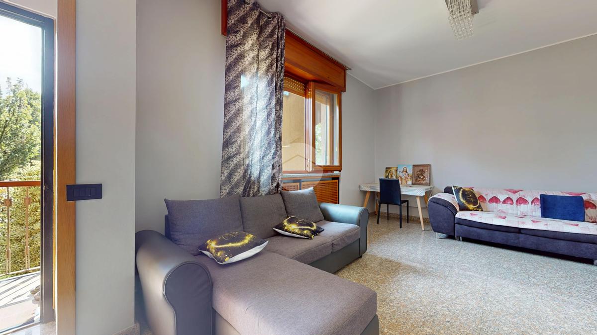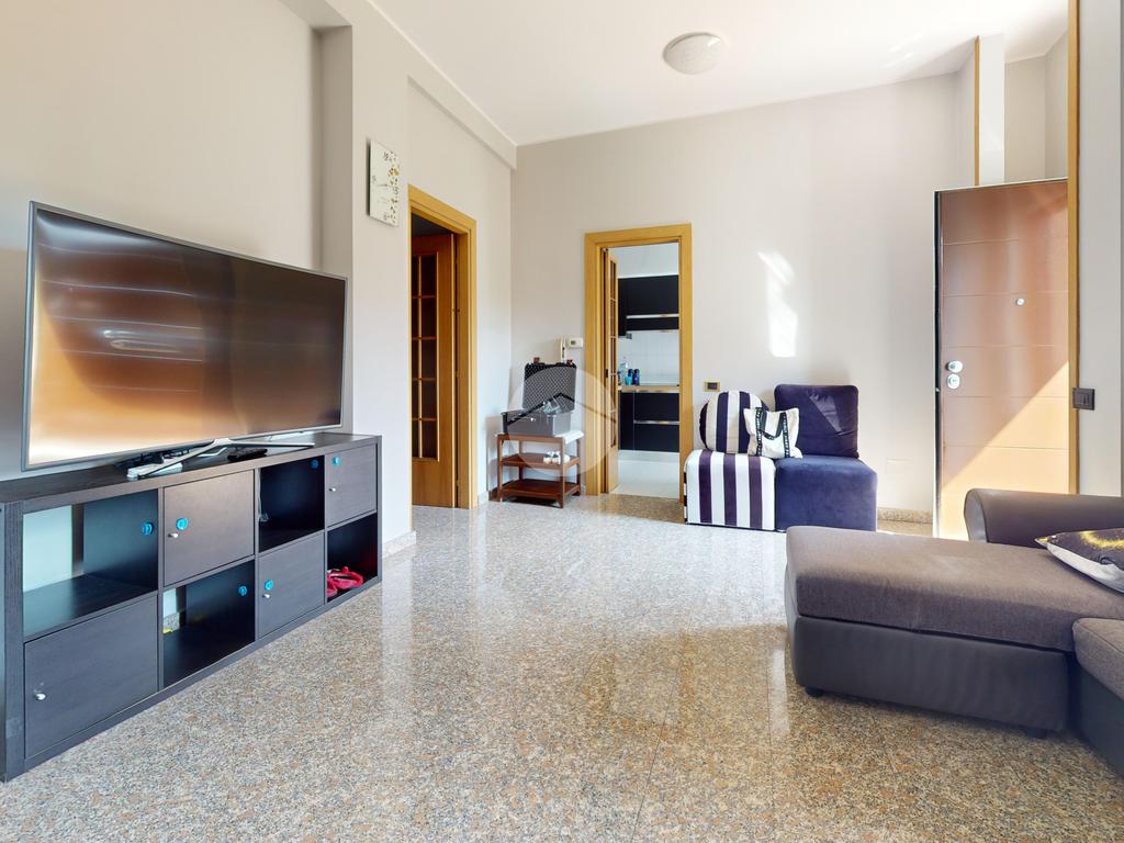L’ingresso conduce a un’ampia zona giorno, luminosa e accogliente, che si apre su un balcone ideale per regalare respiro agli ambienti e creare un naturale prolungamento verso l’esterno.