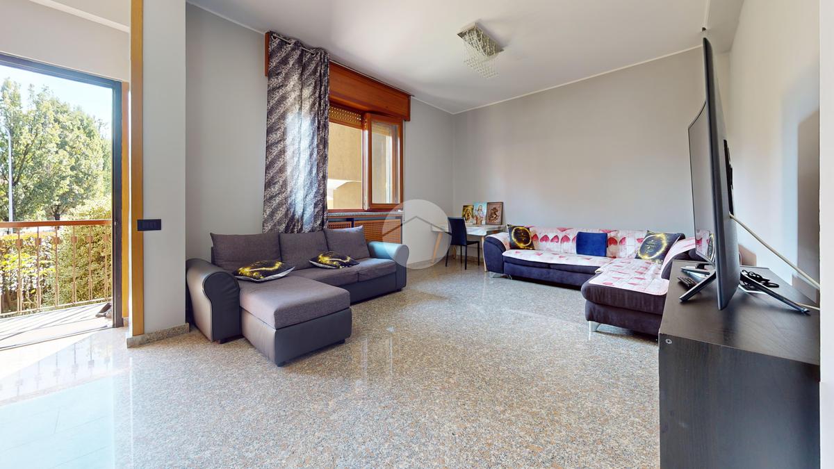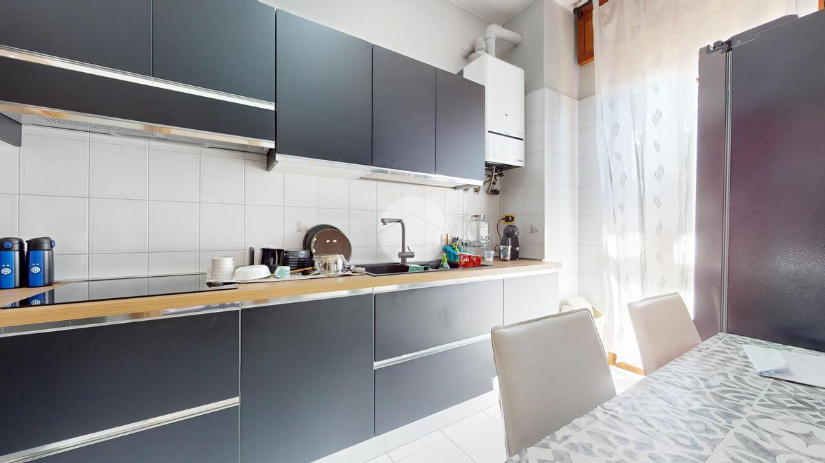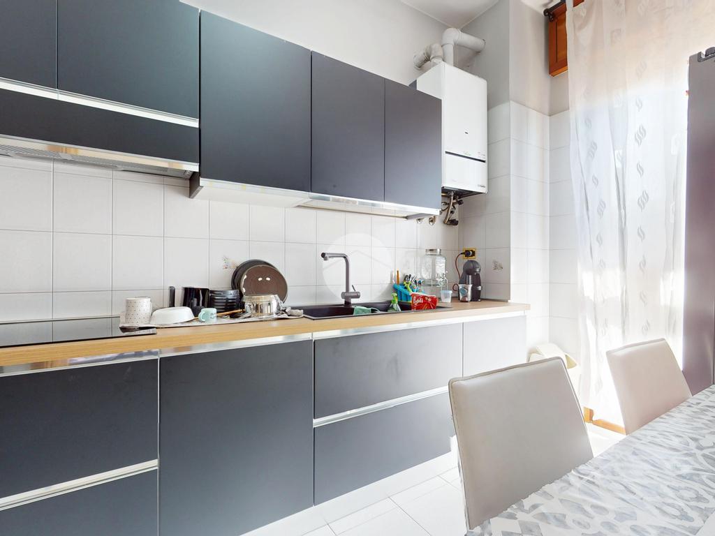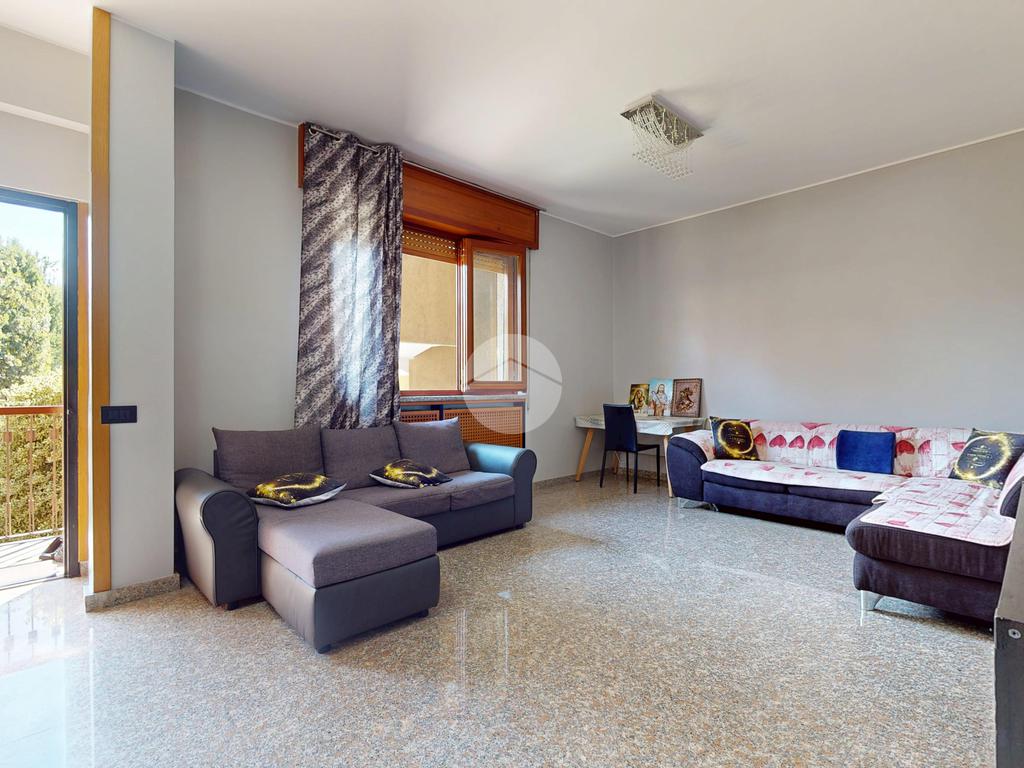 L’ingresso conduce a un’ampia zona giorno, luminosa e accogliente, che si apre su un balcone ideale per regalare respiro agli ambienti e creare un naturale prolungamento verso l’esterno.
