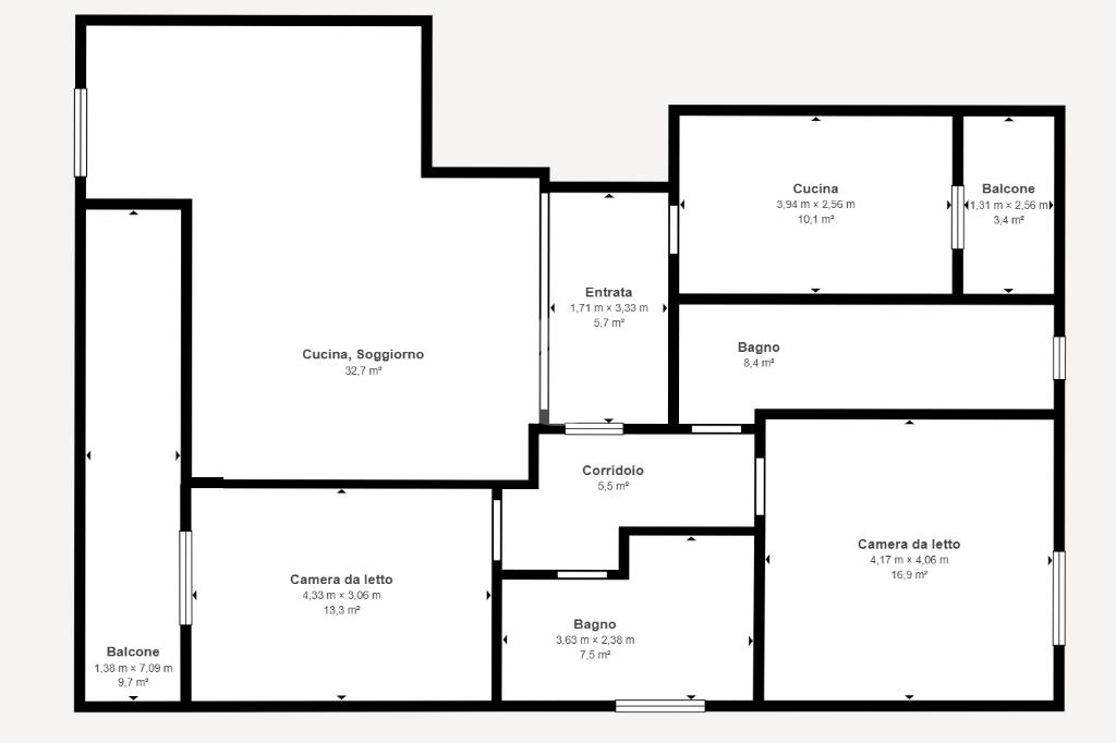 La zona notte è pensata per garantire comfort e privacy. La camera matrimoniale è spaziosa e gode dell’accesso diretto al secondo balcone, mentre la cameretta si presta perfettamente come stanza per i figli, studio o locale multifunzionale. I bagni sono due, entrambi finestrati: uno dotato di vasca, perfetto per i momenti di relax, e l’altro con box doccia, pratico e funzionale per la quotidianità.