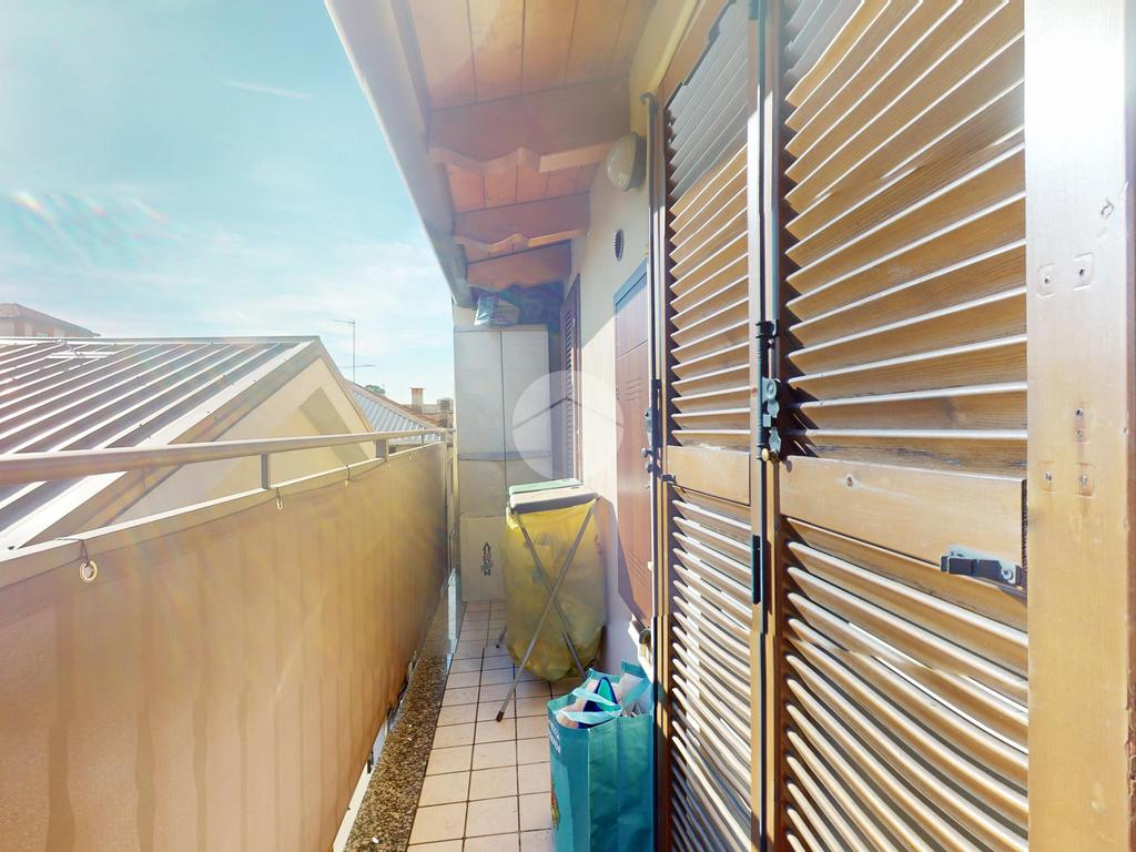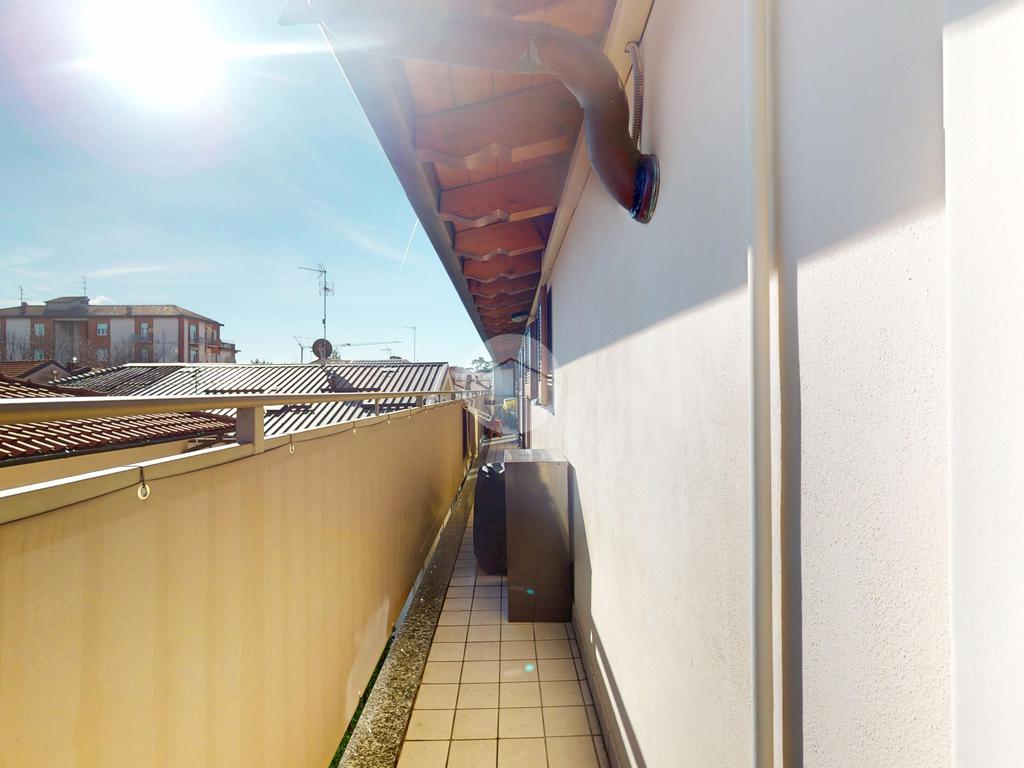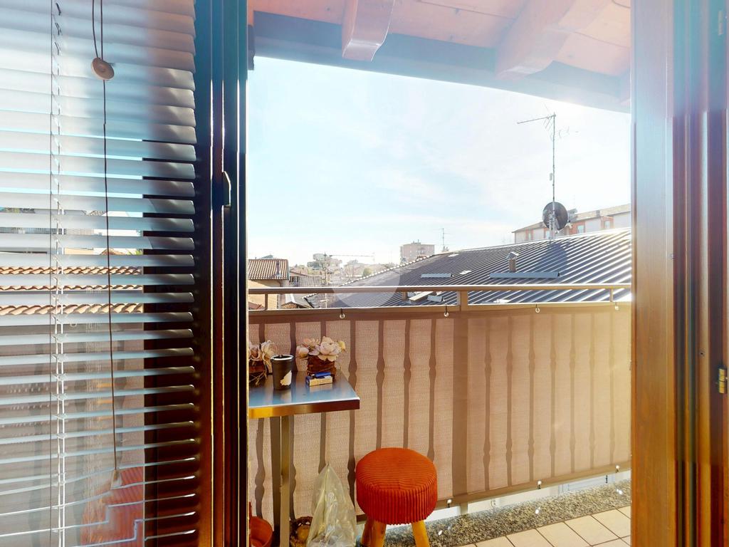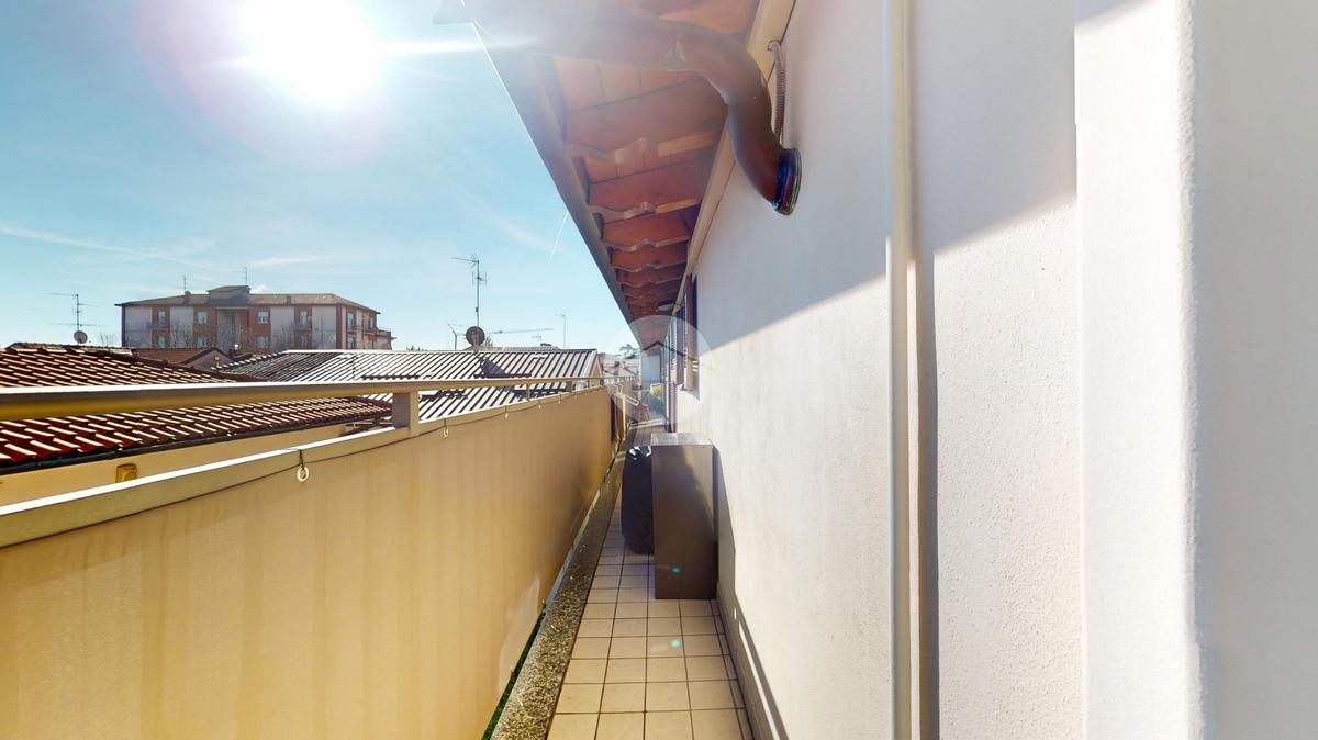 La vera chicca è il balcone ad angolo che percorre l’intero appartamento, creando continuità tra interno ed esterno e regalando sfogo e luminosità a tutti gli ambienti.