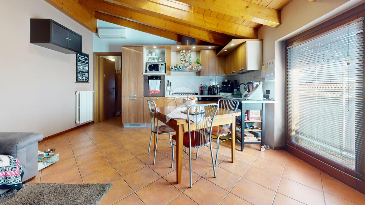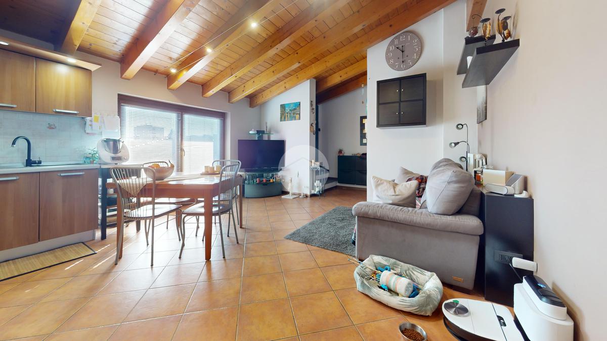 L’ingresso accompagna subito nella zona giorno ampia e accogliente, con soggiorno e cucina a vista: un ambiente moderno, conviviale, perfetto sia per la vita di tutti i giorni sia per ricevere amici senza “spezzare” gli spazi.