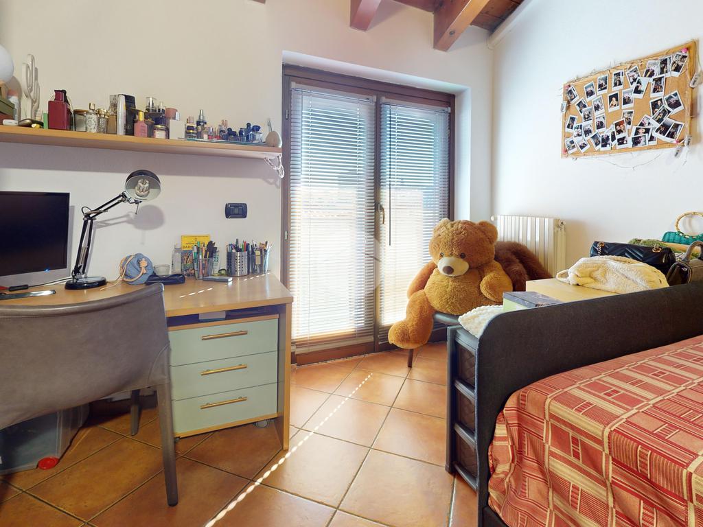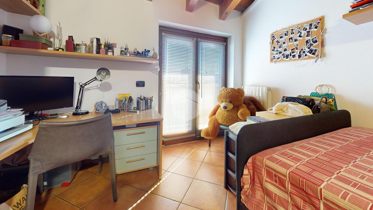 La zona notte è ben separata e pensata per garantire privacy e praticità. Troviamo due camere, una matrimoniale comoda e una cameretta ideale come stanza bimbi, studio o camera ospiti, adattabile alle esigenze di oggi e di domani. Il bagno è finestrato, dettaglio sempre più raro e prezioso, perché offre aerazione naturale e comfort quotidiano.