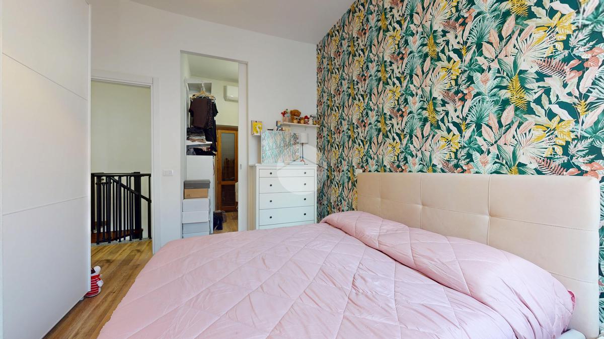 Al secondo livello si sviluppa la zona notte, composta da due camere matrimoniali, entrambe di comoda metratura. Una delle due dispone anche di cabina armadio, un valore aggiunto sempre molto apprezzato per chi desidera ordine, funzionalità e uno spazio dedicato. Completa il piano il bagno finestrato, dotato di box doccia e con uscita su un piccolo balconcino, dettaglio che rende l’ambiente ancora più arioso e zero spese condominiali.